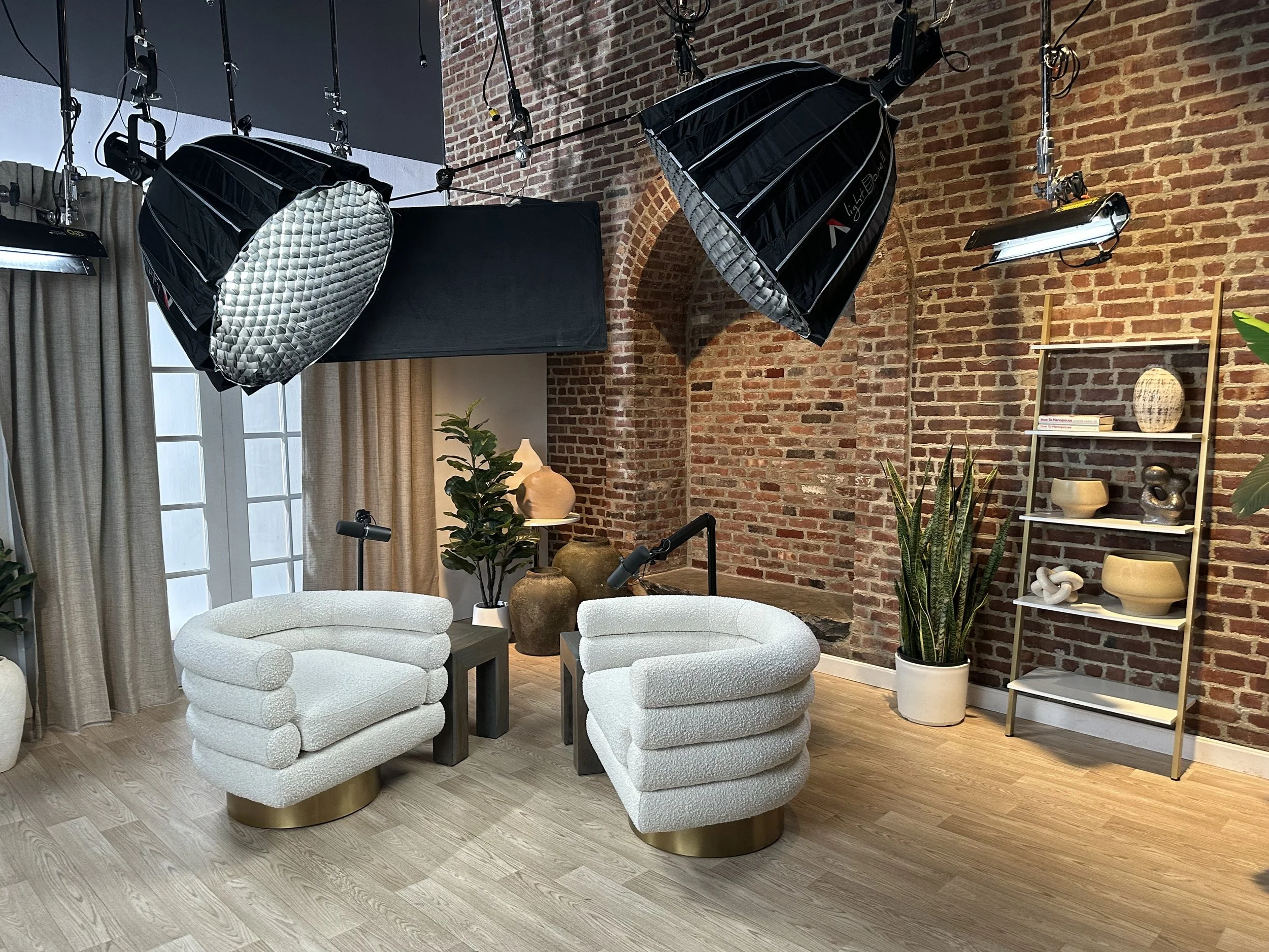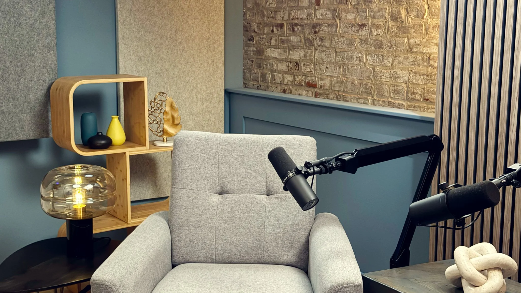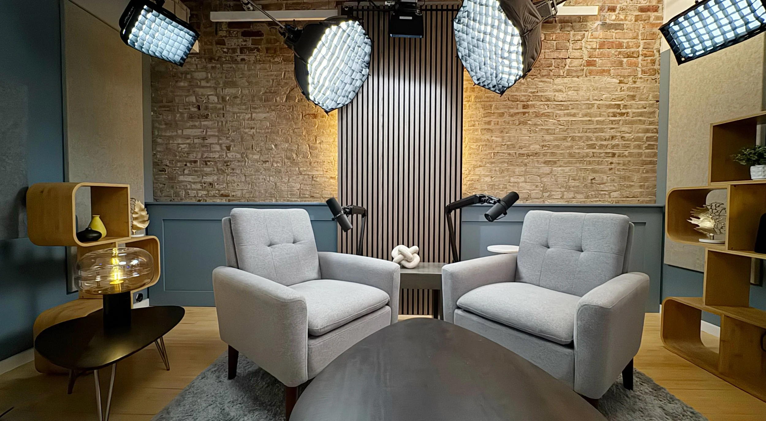 Fully equipped, professional-grade turnkey video podcast studio. Designed for solo hosts and intimate conversations.
